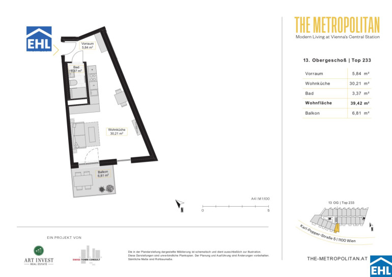 Das moderne Wohnbauprojekt „METROPOLITAN – Modern Living“ befindet sich im aufstrebenden und lebendigen Sonnwendviertel, nur wenige Gehminuten vom neu errichteten Hauptbahnhof entfernt. Die Lage bietet eine hervorragende Infrastruktur mit zahlreichen Einkaufsmöglichkeiten, Restaurants und Cafés in der Umgebung. Besonders hervorzuheben ist die Nähe zum Helmut-Zilk-Park, der Erholung und Freizeitspaß für die ganze Familie bietet.