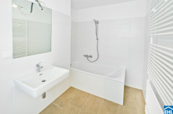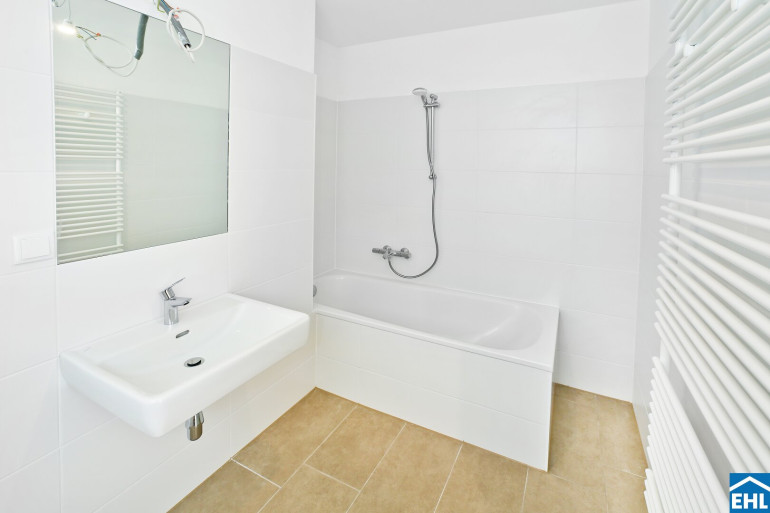 - Moderne Bäder mit Badewanne und Waschmaschinenanschluss.