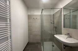 Die Küche ist modern und funktional gestaltet und fügt sich harmonisch in den Wohnbereich ein. Das Badezimmer verfügt über eine Badewanne und bietet ausreichend Platz für den täglichen Komfort.