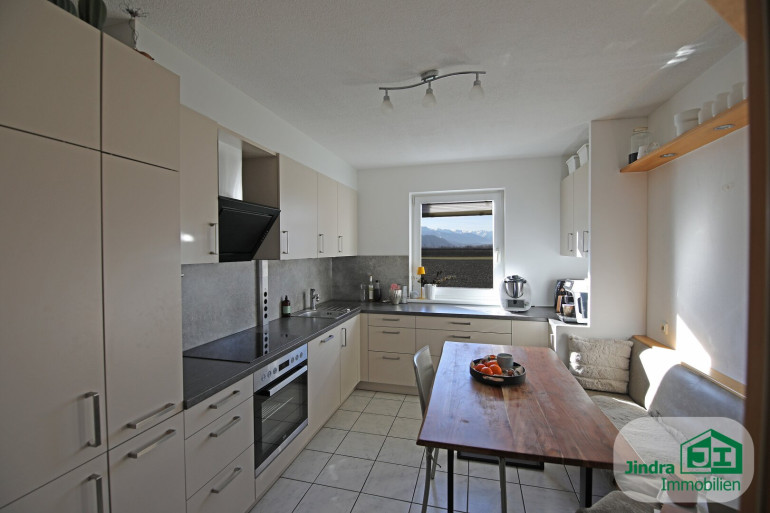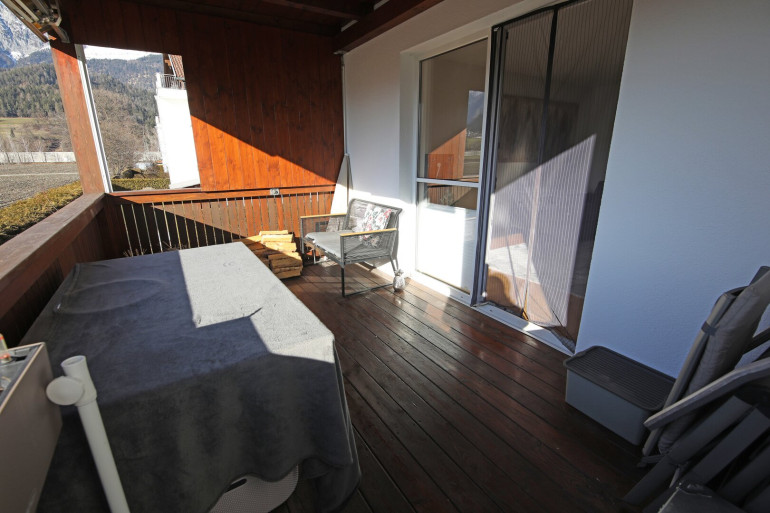 Ein Highlight dieser Immobilie ist die großzügige Terrasse, die nach Südwesten ausgerichtet ist. Genießen Sie auf Ihrer eigenen Terrasse den herrlichen Bergblick und den Blick ins Grüne – der perfekte Ort, um den Tag bei einem Glas Wein ausklingen zu lassen oder den Sonntag mit einem entspannten Frühstück im Freien zu beginnen.