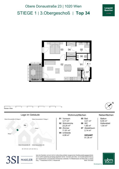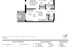 Diese moderne Wohnung befindet sich im 3. Obergeschoß. Die Einheit verfügt über eine Wohnnutzfläche von insgesamt 51,35 m² und bietet zusätzlich einen ca.6,55 m² großen Balkon.