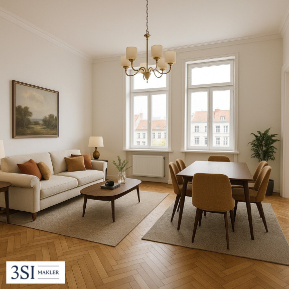 Diese lichtdurchflutete 4-Zimmer-Altbauwohnung mit ca. 131 m² Wohnfläche bietet aufgrund ihres smart durchdachten Grundrisses viel Platz und eine gute Basis für ein gemütliches Zuhause sowohl für anspruchsvolle Singles und Paare als auch für Familien.