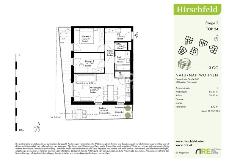 Am Rande eines weitläufigen Grünzugs, der sich bis zum Bisamberg erstreckt, entsteht im naturnahen Hirschfeld ein einzigartiges Wohnquartier: Auf drei Bauplätzen entwickelt sich ein modernes Architektur-Ensemble mit elf Gebäuden und rund 440 Wohnungen – ideal für alle, die Ruhe im Grünen mit urbaner Lebensqualität verbinden möchten.