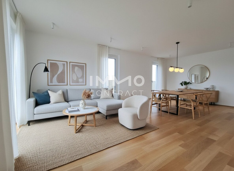 Fliesen, Parkett, Erdwärme, Fußbodenheizung, Wohnküche / offene Küche, Personenaufzug, Südbalkon, Westbalkon, Badewanne, Kabel/Satelliten-TV, Tiefgarage