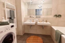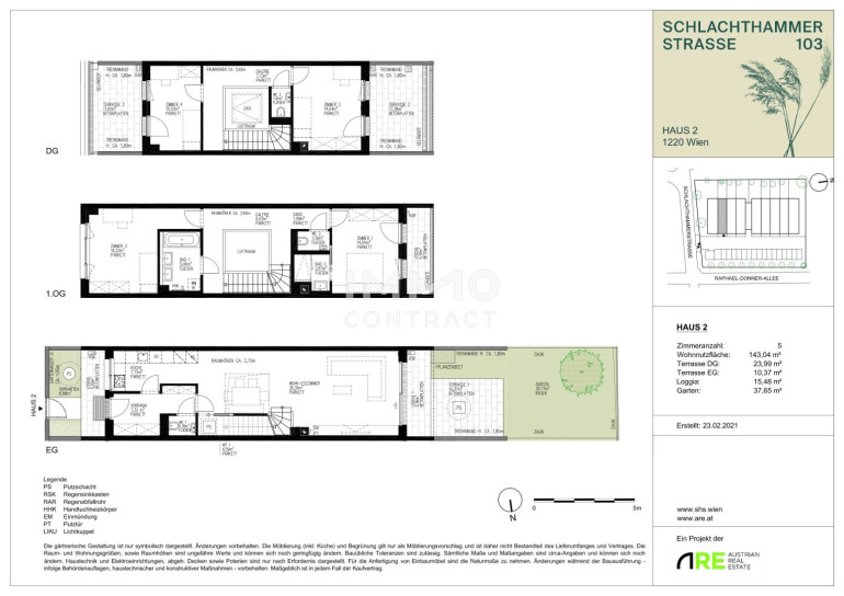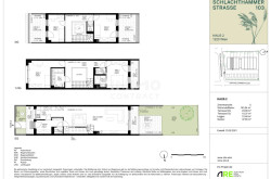 Das Projekt in der Schlachthammerstraße liegt in Essling östlich des Wiener Stadtzentrums, zwischen Aspern und der Seestadt, Hirschstetten und dem Marchfeld. Die Buslinie 98A fährt direkt zur U2, und auch die Buslinien 26A, 88A, 88B und N26 sind in wenigen Minuten zu Fuß erreichbar. Darüber hinaus führt ein durchgehender Radweg mit einer Fahrzeit von etwa 30 Minuten ins Stadtzentrum: durch die Lobau und über die Donauinsel, durch den Prater und die Donaulände entlang. Zu Fuß ist der Nationalpark Donau-Auen rund 15 Minuten entfernt.Beschreibung der Immobilie