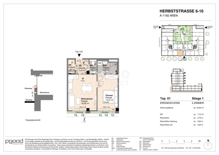 Der guten Ordnung halber halten wir fest, dass, sofern im Angebot nicht anders vermerkt, bei erfolgreichem Abschlussfall eine Provision anfällt, die den in der Immobilienmaklerverordnung BGBI. 262 und 297/1996 festgelegten Sätzen entspricht - das sind 3 % des Kaufpreises zzgl. 20 % USt. Diese Provisionspflicht besteht auch dann, wenn Sie die Ihnen überlassenen Informationen an Dritte weitergeben. Es besteht ein wirtschaftliches Naheverhältnis zum Verkäufer. Wir weisen darauf hin, dass wir als Doppelmakler tätig sind. Die Vertragserrichtung und Treuhandabwicklung ist gebunden an ARNOLD Rechtsanwälte GmbH, Stoß im Himmel 1, 1010 Wien. Die Kosten betragen 1,5 % des Kaufpreises zzgl. 20 % USt. sowie Barauslagen und Beglaubigung.