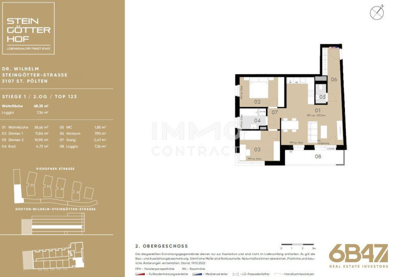 Im St. Pöltner Stadtteil Viehofen, unweit des Naherholungsgebietes der Viehofner Seen und des Ratzersdorfer Sees befindet sich diese neu erbaute und bereits vollständig bezugsfertige Wohnhausanlage.