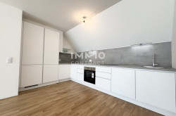Der offene Wohnbereich mit integrierter Küche ist der perfekte Ort zum Ankommen, Chillen oder Freunde einladen. Hier wird gekocht, gelacht und gelebt – ganz ohne Trennung zwischen Alltag und Freizeit. Die großen Fenster sorgen für viel Licht und eine angenehme Atmosphäre.