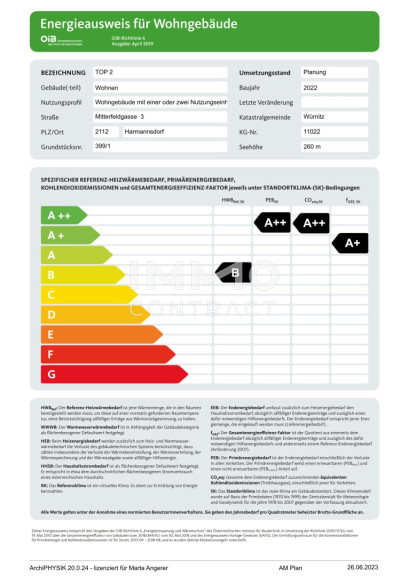 | Heizwärmebedarf: | B 29,50 kWh/m²a |