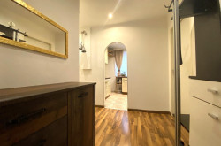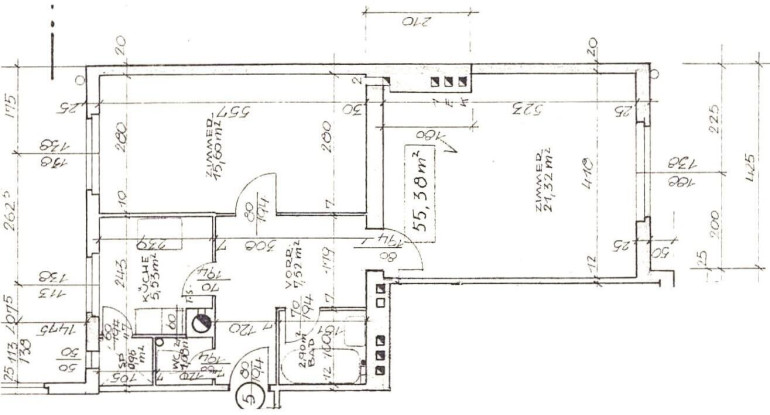 Aus dem zentralen Vorraum gelangen Sie in das ca. 21 m² große Wohnzimmer, das ca. 16 m² große, hofseitige Schlafzimmer, die hofseitige Küche mit Abstellraum/Speis sowie das Bad und das separate WC.
