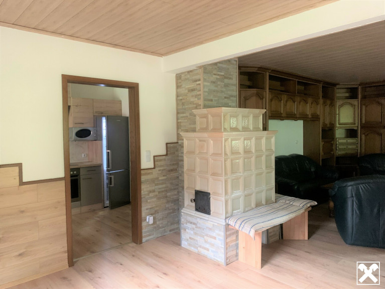 - ca. 33 m² großes Wohn-Esszimmer mit schönem Kachelofen