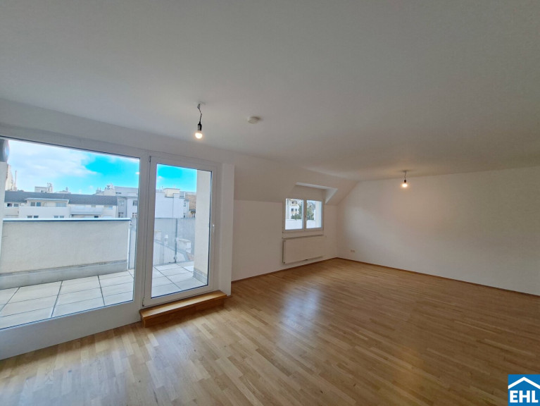 Die Wohnung selbst befindet sich im 2. Dachgeschoss und gliedert sich in eine großzügige Wohnküche, drei getrennt begehbare Schlafzimmer, zwei Badezimmer mit Dusche und WC, sowie Badewanne, Doppelwaschbecken und Waschmaschinenanschluss, sowie einen Vorraum. Die ca. 7m² große Terrasse bietet Ihnen Zeit an der frischen Luft.