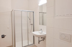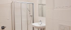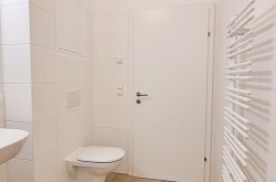 Weiters gibt es auch ein Bad mit Dusche und WC, das aus dem zentralen Raum zugänglich ist.