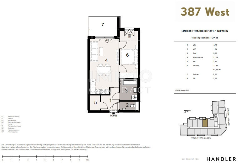 Diese moderne 2-Zimmer-Neubauwohnung im 1. Dachgeschoss ist ein ideales Investment für Kapitalanleger, die auf starke Vermietbarkeit und klare Renditeperspektiven setzen. Die kompakte, nachgefragte Wohnungsgröße, der effiziente Grundriss und der attraktive Balkon ergeben ein Gesamtpaket, das am Mietmarkt besonders gut performt.
