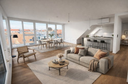 Alle 26 Wohneinheiten verfügen über großzügige Freiflächen, in Form von Loggien, Balkonen, Terrassen und Eigengärten, die das Wohnerlebnis perfekt abrunden. In den beiden obersten Etagen befinden sich exklusive DG-Wohnungen, denen beiden zusätzliche private Dachterrassen zugeordnet sind. Somit bietet das Projekt Arndt Fifty auch sehr anspruchsvollen Kunden Luxuswohnungen der Sonderklasse.