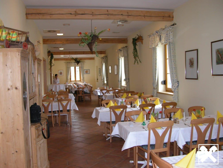 Der Gasthof überzeugt mit mehreren einladenden Gasträumen, einem großen Festsaal für Feiern und Veranstaltungen sowie einem schattigen gemütlichen Gastgarten.