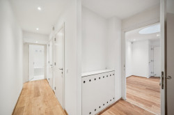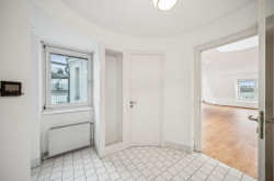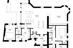 Der repräsentative Wohnbereich mit ca. 68 m² bildet das Herzstück der Wohnung und öffnet sich zur großzügigen Terrasse mit rund 44 m², die ein außergewöhnliches Wohngefühl und einen privaten Rückzugsort im Freien bietet. Dem Wohnbereich angeschlossen ist eine stilvolle Bibliothek mit maßgefertigtem, integriertem Bücherregal. Die Wohnung verfügt über drei großzügige Schlafzimmer sowie drei Badezimmer. Eines der Bäder ist mit einer Badewanne ausgestattet, die beiden weiteren mit eleganten Duschen. Ein Schlafzimmer bietet zusätzlich eine eigene Garderobe. Ergänzt wird das Raumangebot durch zwei Abstellräume, einen separaten Waschraum sowie ein Gäste-WC.