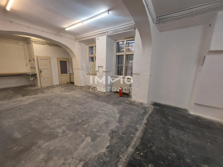 Das Geschäftslokal befindet sich im EG eines typischen Wiener Altbaus und verfügt über vier große Portalfenster sowie eine Eingangstür zur Gasse, was eine hervorragende Sichtbarkeit und Belichtung gewährleistet.