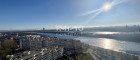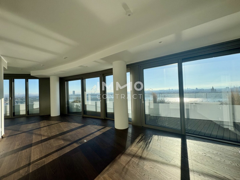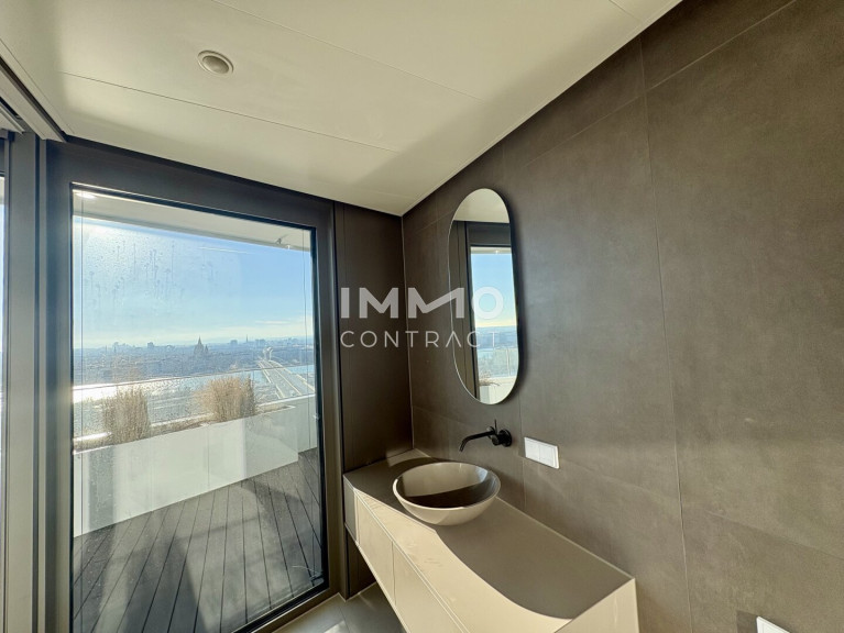 Das absolute Highlight ist der über 70 m² große Balkon: Sonne begleitet Sie hier vom Vormittag bis zum stimmungsvollen Sonnenuntergang hinter dem Kahlenberg. Der Ausblick ist schlichtweg spektakulär – von der Wiener Innenstadt mit Stephansdom, Prater und Riesenrad bis hin zur umliegenden Natur der Donauinsel, Neuen Donau bis hin zu den Hausbergen Wiens.