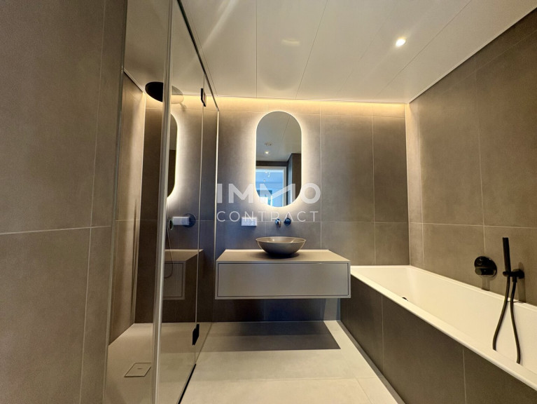 Zwei stilvolle Badezimmer sorgen für höchsten Wohnkomfort: eines mit traumhaftem Blick über die Stadt, das andere mit Badewanne und separater Dusche. Ergänzt wird das Raumangebot durch drei Toiletten sowie einen großzügigen Hauswirtschaftsraum, der im Alltag für zusätzlichen Komfort sorgt.