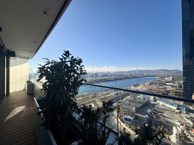 Außergewöhnlicher Balkon, Sonne fast den ganzen Tag, Ausblick wohin das Auge reicht: Neubau Erstbezug DANUBEFLATS