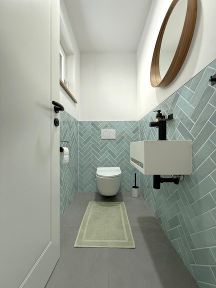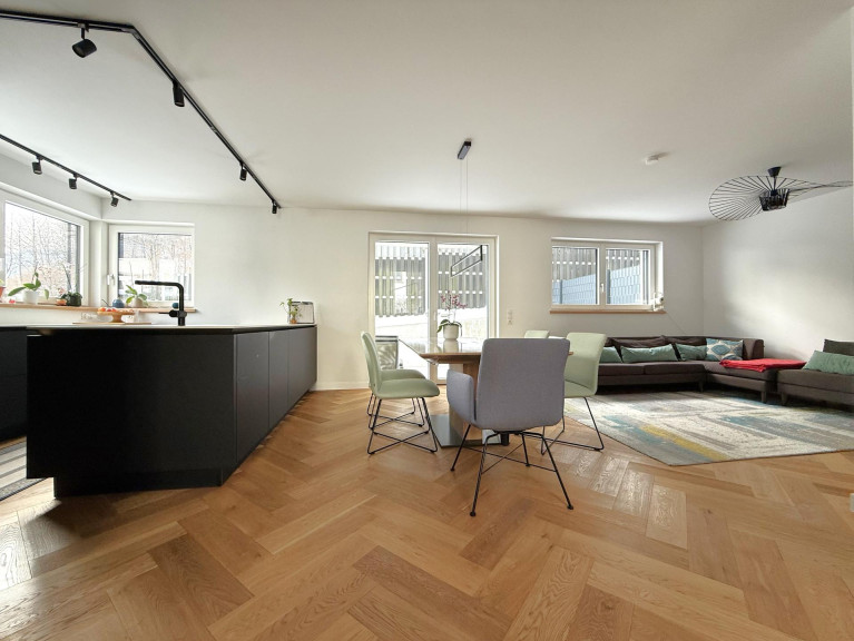 Das im Jahr 2021 errichtete Haus befindet sich in sehr gutem Zustand und überzeugt durch eine stilvolle, langlebige Ausstattung. Edle Fischgrät-Parkettböden, geschmackvolle Fischgrät-Fliesen im Badezimmer, eine hochwertige Einbauküche sowie eine angenehme Gas-Zentralheizung unterstreichen den hohen Qualitätsanspruch dieser Immobilie.