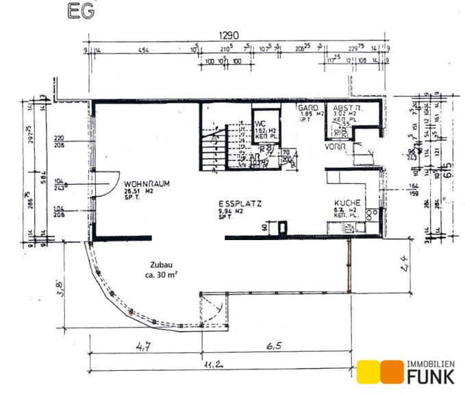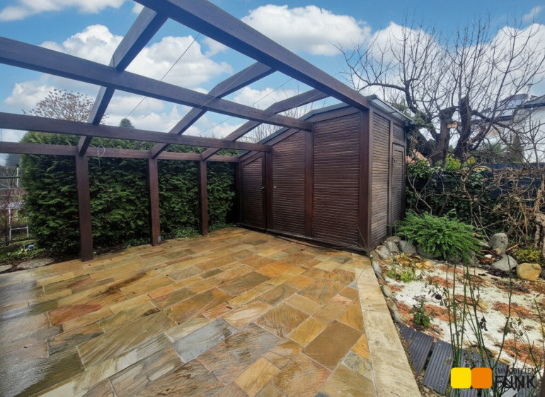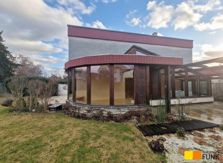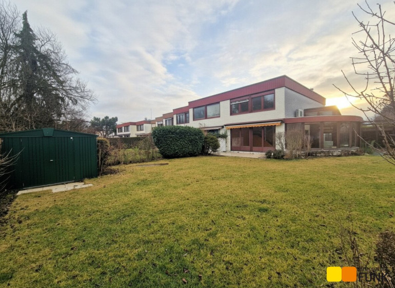 Das im Jahr 1980 in Ziegelmassivbauweise errichtete Siedlungsreihenhaus präsentiert sich in leicht renovierungsbedürftigem, aber gepflegtem Zustand. Es wurde im Jahr 1989/90 durch einen bewilligten, gartenseitigen Zubau mit einem etwa 30 m² großen Wintergarten erweitert. So beträgt die gesamte Wohnfläche nun großzügige ca.156 m². Zusätzlich wurden im Garten noch ein Holznebengebäude und ein Geräteschuppen errichtet.
