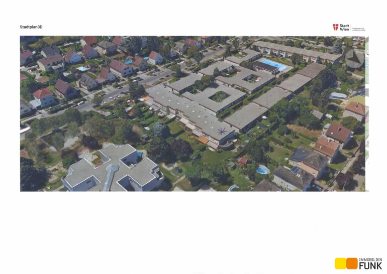 Die Wohnsiedlung, in der das Reihenhaus liegt, befindet sich in ruhiger Wohnlage des 21. Wiener Gemeindebezirks, etwa 1 km südlich des Marchfeldkanals. Apotheken und Arztpraxen befinden sich im Umfeld. Private und öffentliche Kinderbetreuungseinrichtungen sind fußläufig erreichbar. Die nächstgelegenen Volksschulen befinden sich am Marco-Polo-Platz 9, in der Hanreitergasse 2 (auch Mittelschule) oder an der Brünner Straße 139.