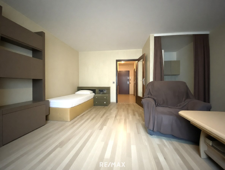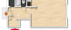 Aus dem Vorraum gelangen Sie in den ca. 27m² großen Wohn-/Schlafraum mit Kochnische, das Bad, das separate WC und den Abstellraum.