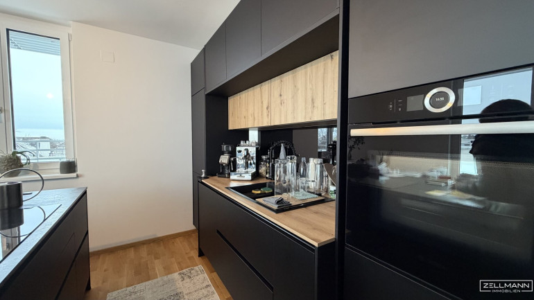 Ausstattung auf hohem Niveau Die Wohnung überzeugt durch eine ausgesprochen hochwertige Ausstattung. In sämtlichen Wohnräumen ist edler Eichenparkettboden verlegt, der ein warmes, zeitloses Ambiente schafft. Bad und WC präsentieren sich mit großformatigen, modernen Fliesen, klaren Linien und zeitgemäßer Sanitärausstattung. Dreifach verglaste Kunststofffenster mit außenliegenden Aluminium-Deckschalen gewährleisten exzellenten Wärme- und Schallschutz, während außenliegende Jalousien mit Sichtblende Komfort, Privatsphäre und effektiven Sonnenschutz bieten.