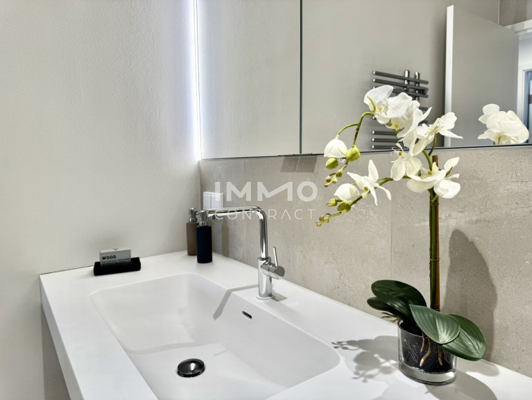 Ein besonderes Augenmerk wurde auf hochwertige Materialien und eine stilvolle Ausführung gelegt. In den Wohnräumen wurden edle Parkettböden verlegt, während die modern gestalteten Badezimmer bereits mit hochwertigen Armaturen, integrierter Beleuchtung, Spots sowie praktischen Spiegelschränken ausgestattet sind und so ein elegantes, zeitloses Ambiente schaffen.