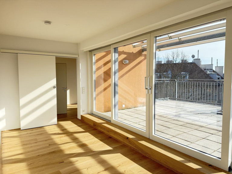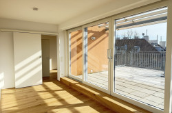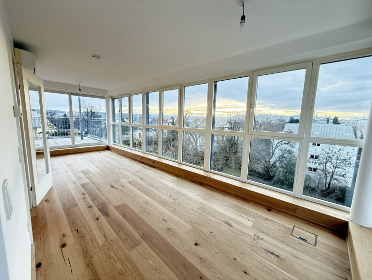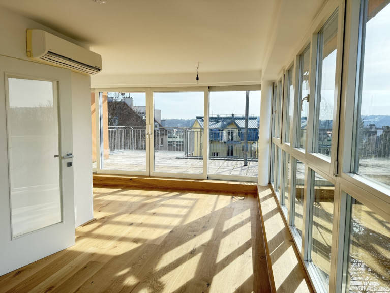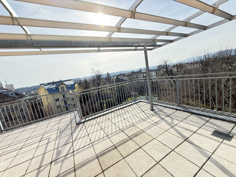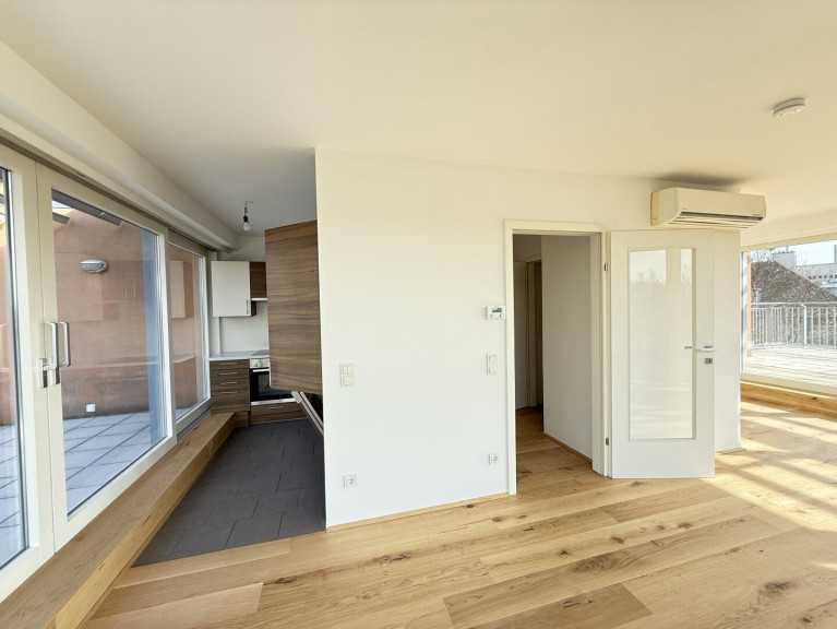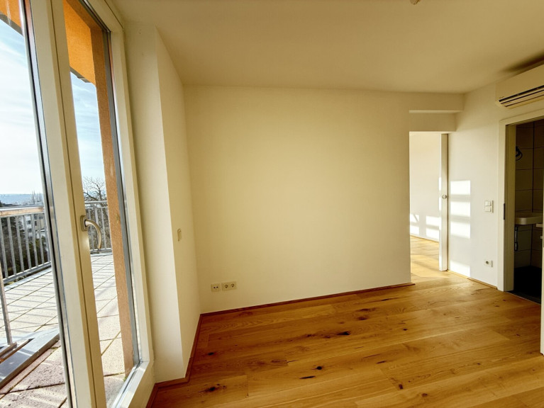Freifläche auf zwei Terrassen mit Schönbrunnblick und Blick auf Steinhofkirche: neu sanierte und klimatisierte 2-Zimmer-Wohnung!
