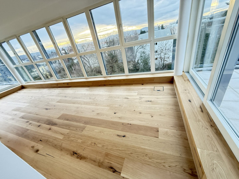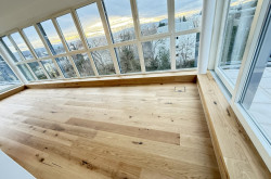 Die Fertigparkettboden sind auf Estrich mit Trittschalldämmung neu verklebt.