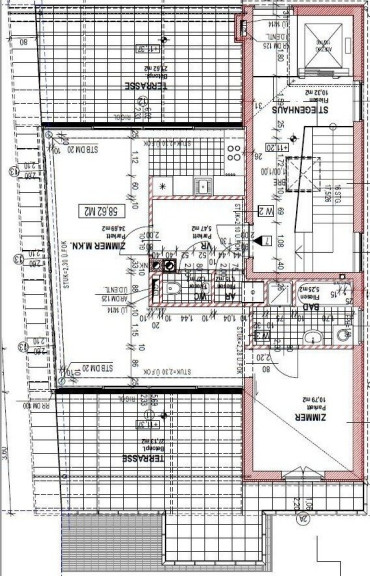 Die Wohnung hat ca. 58,62 m2 und gliedert sich folgendermaßen auf: Vorraum, Abstellraum, separates WC, Badezimmer mit Wanne und Dusche; Küche, Wohnzimmer, Schlafzimmer, 2 Terrassen (27m2 südlich in Richtung Schönbrunn ausgerichtet und 22 m2 nördlich Richtung Steinhofkirche).
