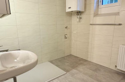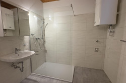 - Badezimmer mit Dusche Fenster und Waschmaschinenanschluss