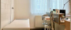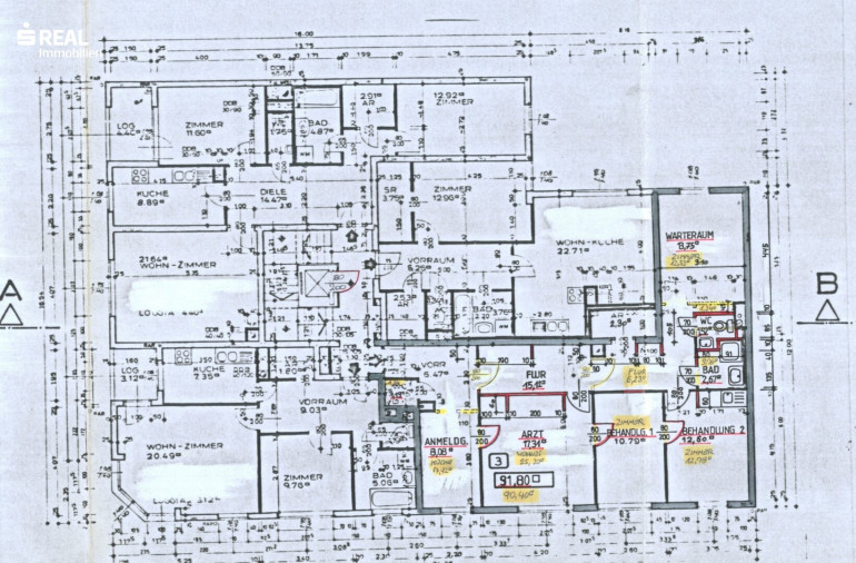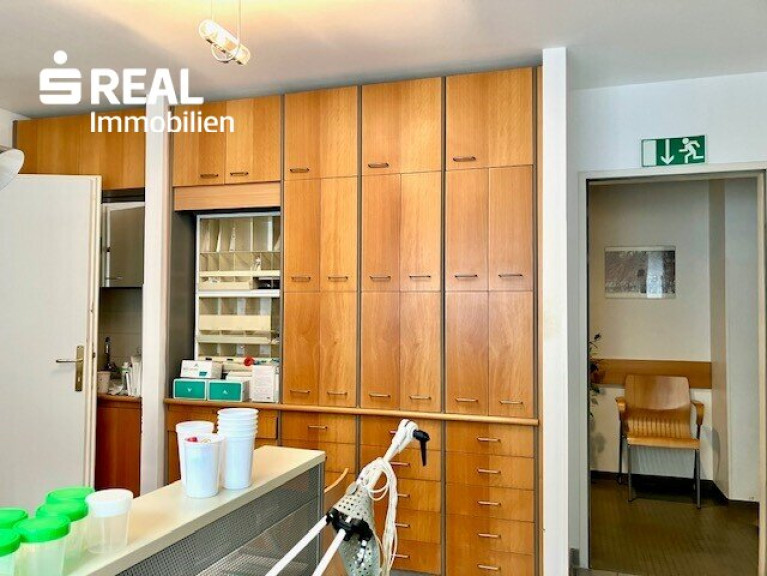 Vom Aufzug bez Stiegenhaus gelangt man in den offenen Empfangsbereich, über einen Verbindungsgang kann man 2 Warteräume/ Büros, 2 Behandlungsräume/ Büros, einen Technikraum, die Teeküche, sowie 1 Bad mit Waschtisch und Dusche bzw. 2 getrennte Toiletten mit Handwaschbecken erreichen. Alle Räume sind getrennt begehbar.