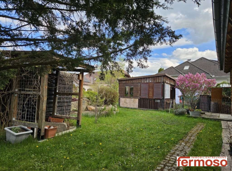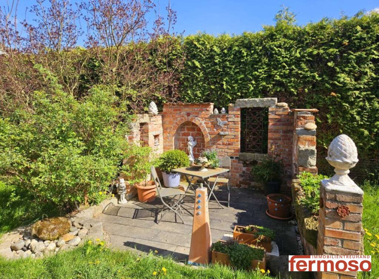 Der liebevoll gestaltete Garten sowie die sonnige Terrasse bieten einen wunderschönen Grünblick und schaffen eine Atmosphäre absoluter Ruhe – perfekt für entspannte Stunden oder stilvolle Abende mit Familie und Freunden.