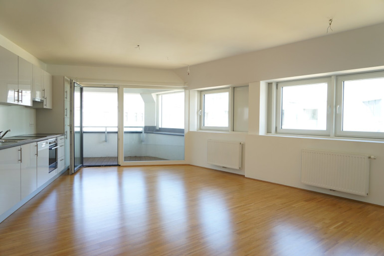 - Wohnraum mit komplett ausgestatteter Küche und Zugang zur Loggia