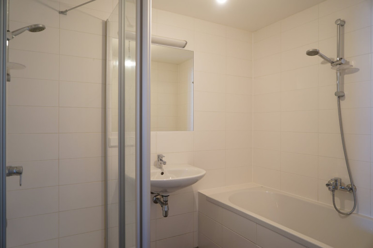 - Badezimmer mit Badewanne, Dusche und Handwaschbecken