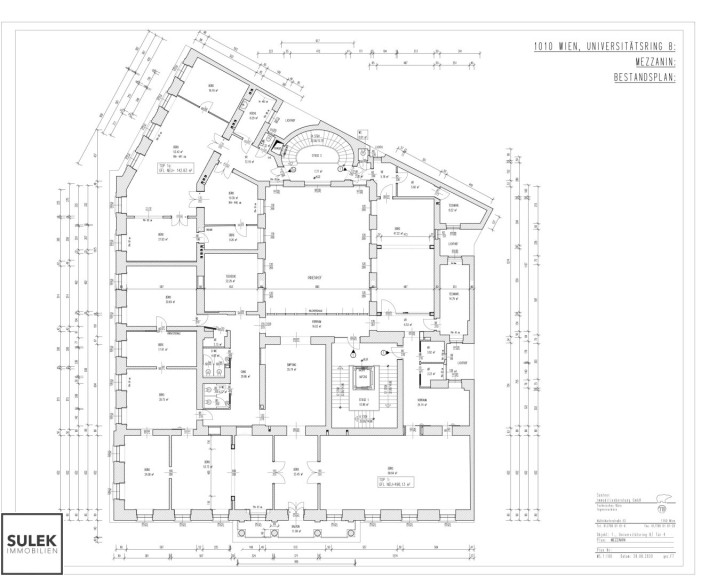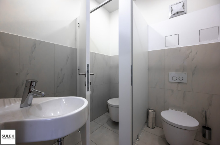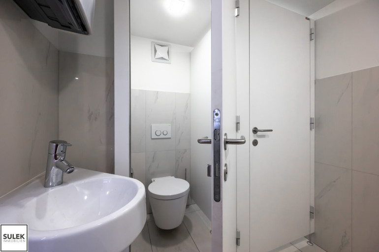 - Empfangsraum, 11 Büroräume, 1 Besprechungsraum oder zusätzliches Großraumbüro, 7 WCs (getrennt für Damen & Herren, 1 Pissoir), 1 Aufenthaltsraum mit Küche, zwei weitere Teeküchen, 2 Abstellräume, 2 Technikräume