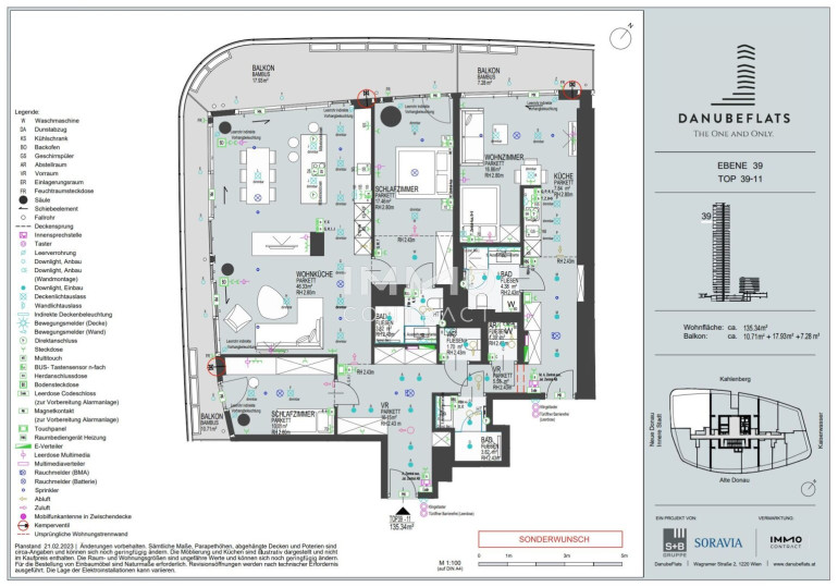 Sichern Sie sich jetzt diese Traumwohnung mit Rundumblick in den DANUBEFLATS und erleben Sie urbanen Luxus auf höchstem Niveau! Für zusätzlichen Komfort sorgt ein Tiefgaragenstellplatz im 1. UG. Dieser kann um EUR 200,- inkl. BK & Ust. angemietet werden.
