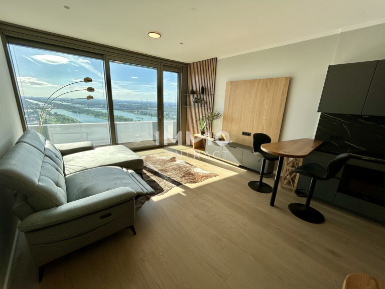 Möbliertes Apartment im 42. Stock mit Weitblick auf die Donau! Pool, Spa und Fitness inklusive!