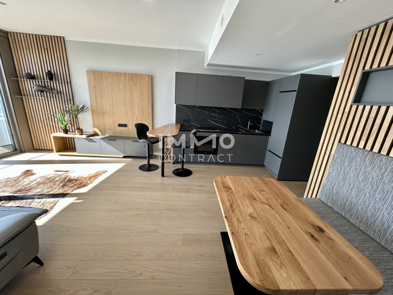 Dieses kleine, aber feine Apartment liegt in einer der begehrtesten Locations der Stadt und bietet modernes Wohnen auf höchstem Niveau. Die hochwertige Tischlerküche ist mit erstklassigen Miele-Geräten ausgestattet und fügt sich nahtlos in den fast komplett verglasten Wohn-, Ess- und Schlafbereich ein, der durch viel Licht und Sonnenschein am Vormittag besticht. Ein weiteres Highlight ist der begrünte Balkon, der zum Entspannen und Genießen im Freien einlädt. Das kompakte Badezimmer bietet alles, was man braucht: Dusche, WC, Waschtisch und einen Handtuchtrockner.