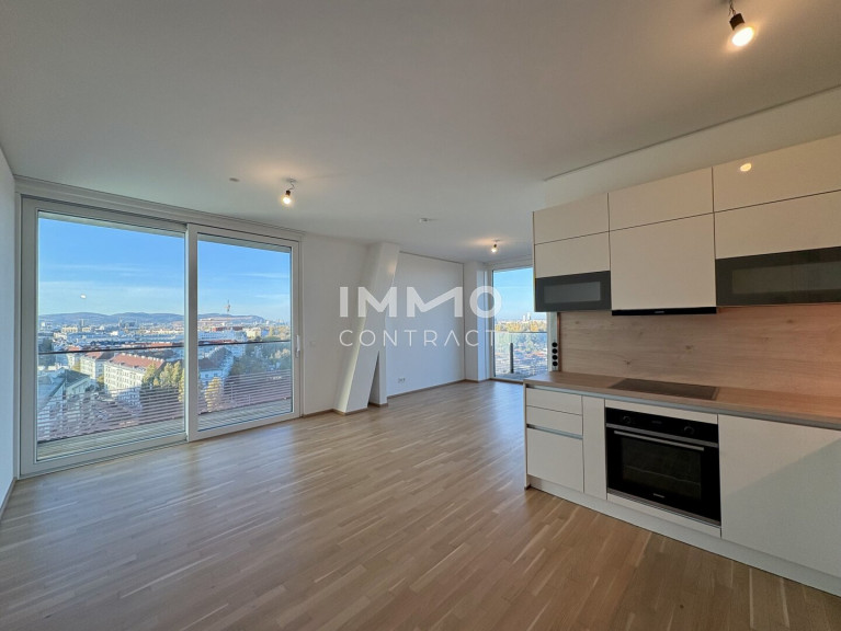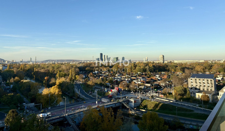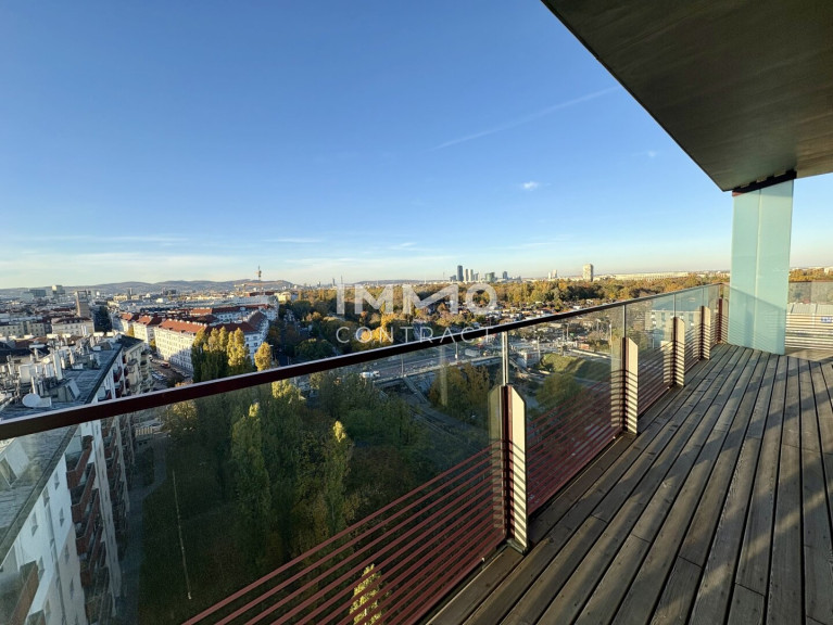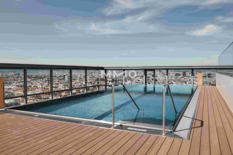 TOP-Ausblick: City mit Stephansdom, Donaukanal, Prater. Concierge, Party & BBQ Lounge, Pool usw.