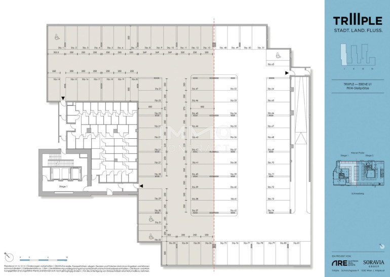 TrIIIple liegt ideal, um all Ihre Wunschdestinationen rasch und unkompliziert zu erreichen. Ideale Lage – vom TrIIIple aus erreichen Sie: • den Grünen Prater in 3 Minuten mit dem Fahrrad • die Supermärkte Spar und Billa sowie einen Bipa in 5 Minuten zu Fuß – zusätzlich zum Supermarkt direkt im Gebäude • die U3 Erdberg / Schlachthausgasse in weniger als 5 Minuten zu Fuß • den Stephansplatz in 15 Minuten mit der U-Bahn • den Hauptbahnhof in 13 Minuten mit der Straßenbahn • den Flughafen Wien-Schwechat in 12 Minuten mit dem PKW • den Flughafen Wien-Schwechat in 12 Minuten mit dem PKWBeschreibung der Immobilie