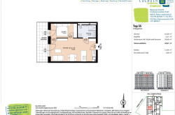 Die Wohnung Top 55 mit 44,87 m² liegt im 7. Obergeschoß– ein Lift ist selbstverständlich vorhanden – und verfügt über folgendes Raumprogramm: