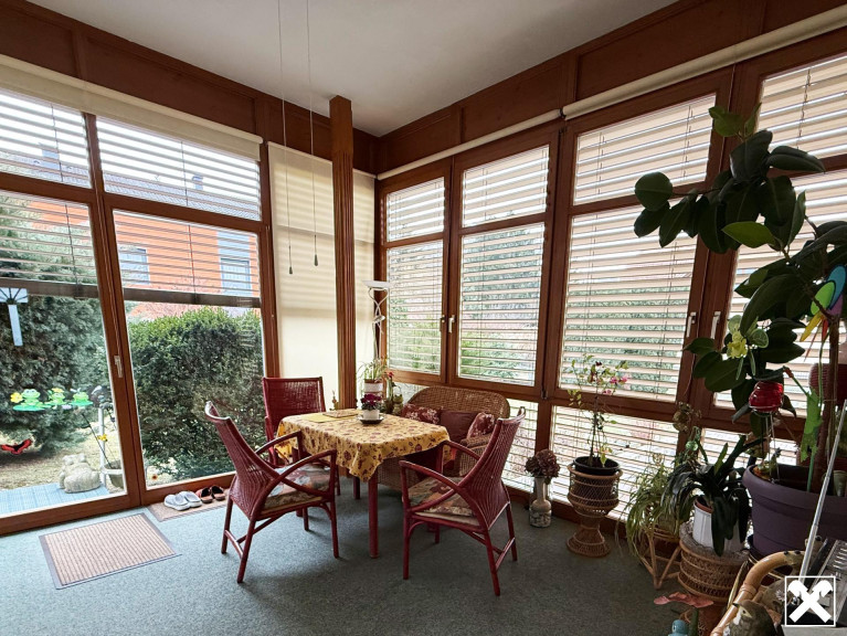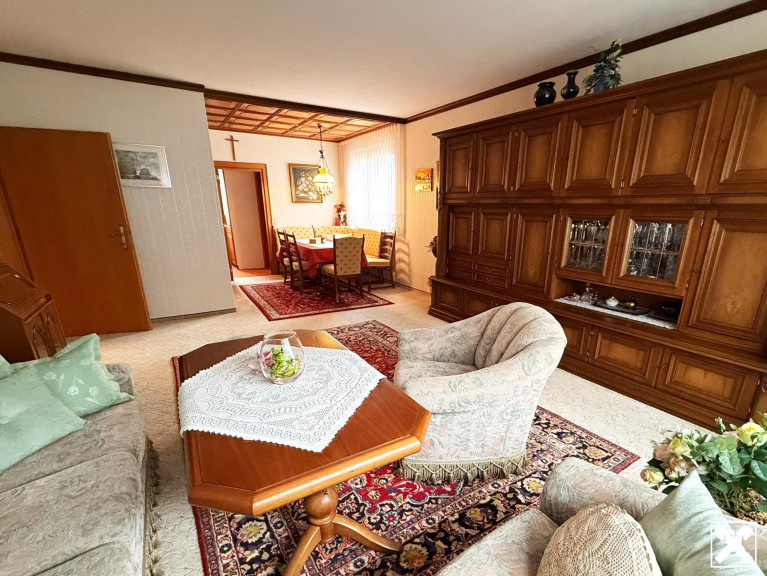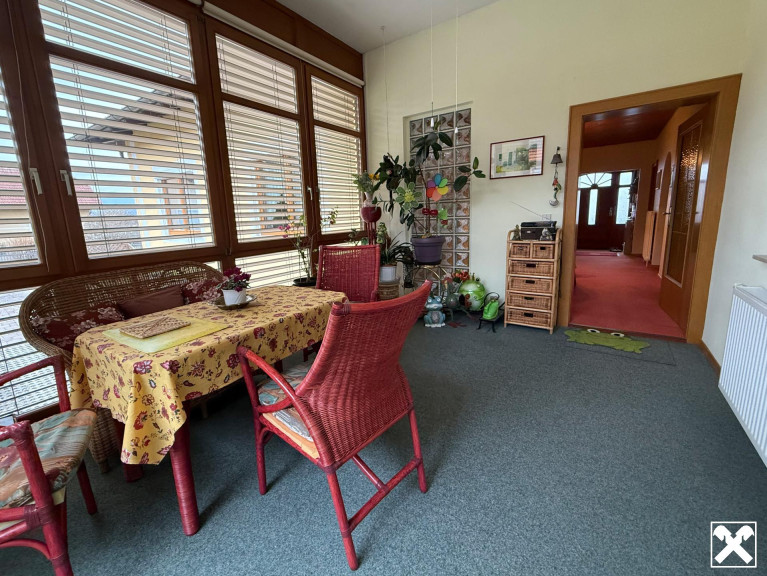 Im liebevoll dekorierten oberen Wohngeschoß finden Sie eine Küche mit Speis, ein großes Wohnzimmer, den beheizbaren Wintergarten (mit Raffstore als Sichtschutz), einen weiteren Sitz-/TV-Bereich, ein Bad, eine Toilette, ein Schlaf- und ein weiteres Zimmer vor.