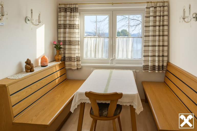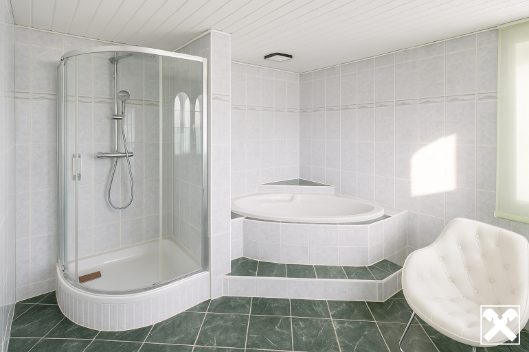 Heizofen, Zentralheizung, Einbauküche, Bad mit Fenster, Badewanne, Dusche, Kabel/Satelliten-TV