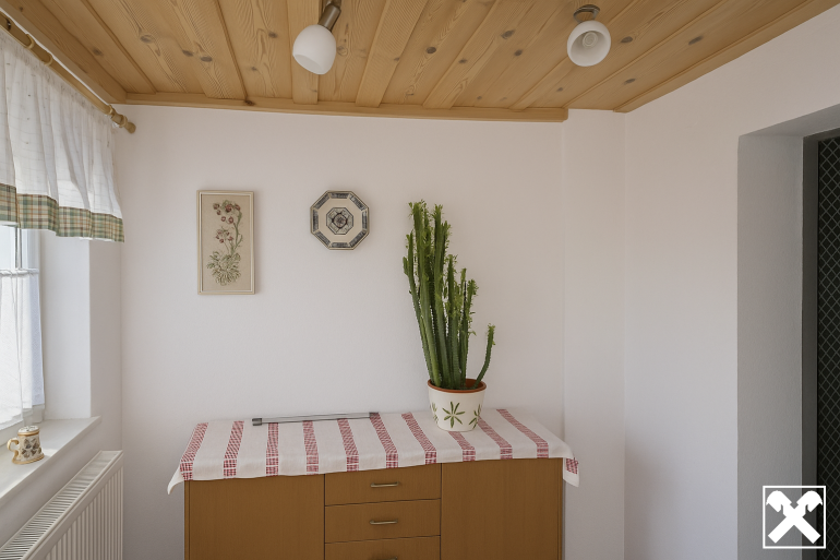 Das Haus verfügt über 3 gemütliche Schlafzimmer, ein helles Wohnzimmer mit Zugang zu Balkon und Loggia, eine gut ausgestattete Küche mit Einbauküche sowie ein Tageslichtbad mit Badewanne und Duschkabine. Das separate WC und ein praktischer Abstellraum runden das Angebot ab. Das Haus ist teilmöbliert und mit Parkett, Laminat und Fliesen hochwertig ausgestattet.