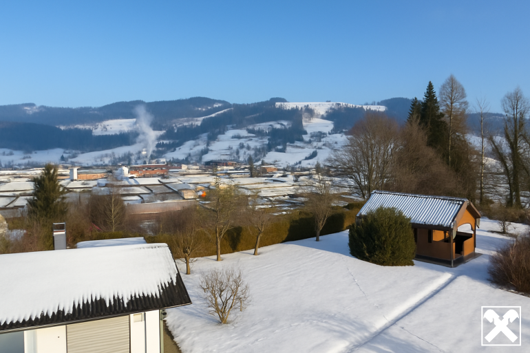 Der großzügige Garten mit rund 689 m² lädt mit seiner Süd-Ost-Ausrichtung zum Verweilen ein – genießen Sie von hier den herrlichen Ausblick in die Bergrichtung. Die Lage in einem ruhigen Wohngebiet/Siedlung macht das Objekt ideal für Familien, die naturnah und dennoch stadtnah wohnen möchten.